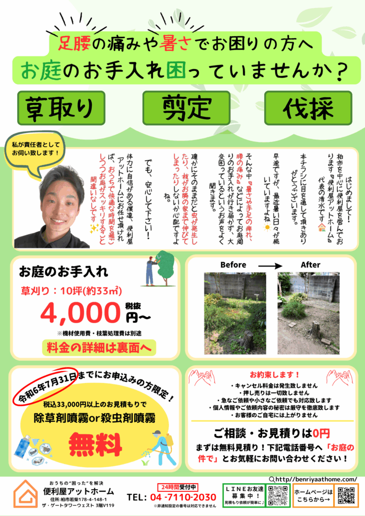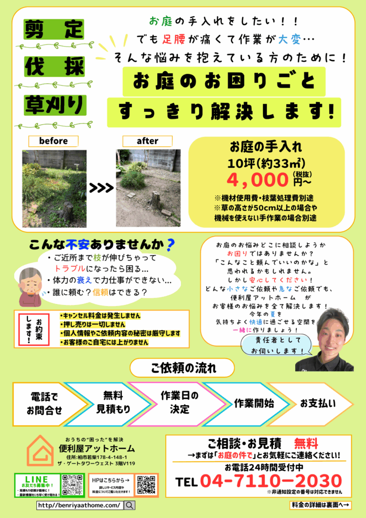 お庭の手入れのチラシ(ターゲット:80代の高齢者層)